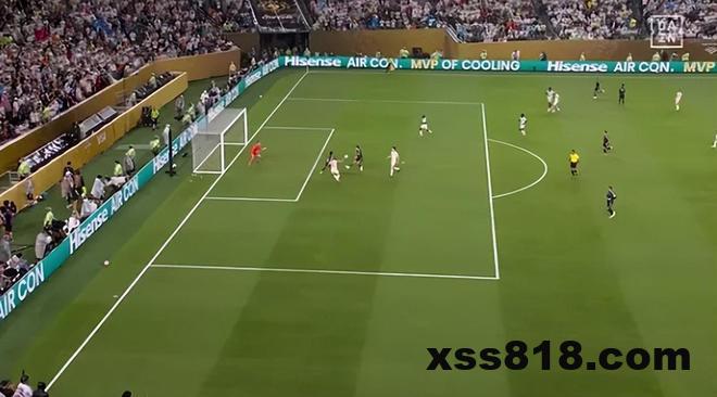 皇马在中路高强度压迫,获得球权之后,维尼修斯突入禁区,巧妙回做给巴尔韦德,后者推射建功,皇马2-0!维尼修斯这次助攻,与当年“金狼”古蒂的脚后跟做球,有异曲同工之妙,堪称经典之作。