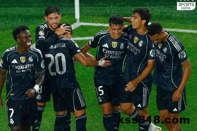 大雨之中,皇马全队拥抱狂欢!短短8分钟,皇马连进2球。维尼修斯1球1助,赛季22球16助;巴尔韦德扩大领先优势,阿隆索的战术非常成功,前场高压,跑动积极,频繁换位抓空当,整体流动性出色,展现出顶级豪门的实力。这样的比分,能确保皇马以小组第1出线。