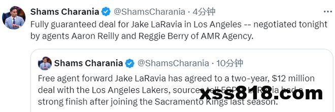 北京时间7月1日,据名记Shams报道,湖人敲定今夏首笔自由球员引援,2米03的神射手拉拉维亚以2年1200万美元的价格加盟球队,联手东契奇和詹姆斯。