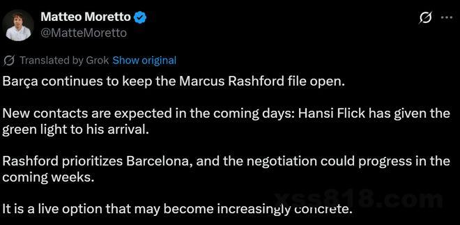 阿莫林与拉什福德的关系不必过多介绍,一句话总结:上赛季曼市德比大战之后已经破裂。现在,拉什福德正在寻求夏窗离队的机会,他的梦想是加盟西甲冠军巴萨。而他距离自己的目标,似乎正在不断拉近。