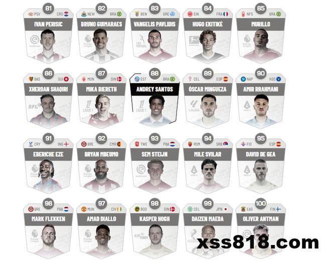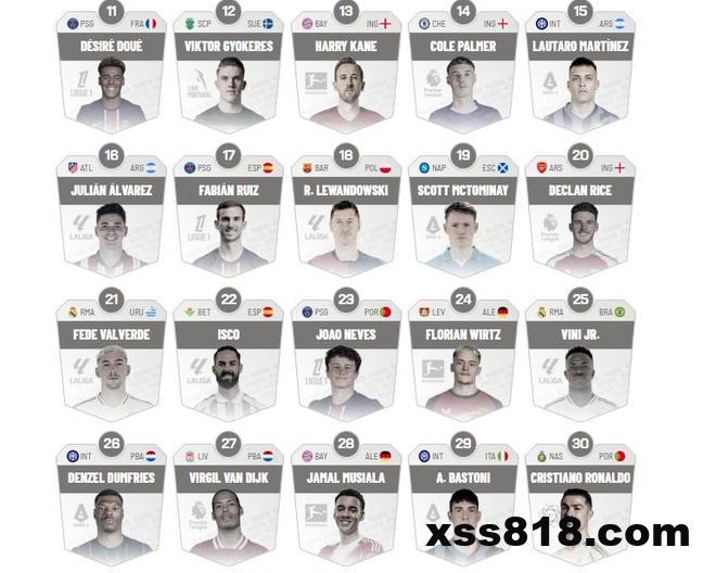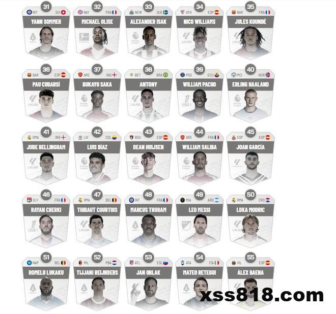 在后面的榜单中,C罗排名第30位,梅西排名第49位,哈兰德排名第40位。