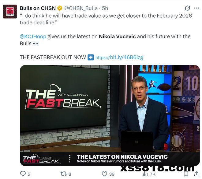 几乎同一时间,公牛队记KCJ在节目中这样说道:“我认为随着2026年2月交易截止日的临近,武切维奇会有 一些交易价值。”【他在两天之前就曾说过今夏公牛买断武切维奇的可能性不大,公牛一直都是致力于交易武神来换取一些资产】
