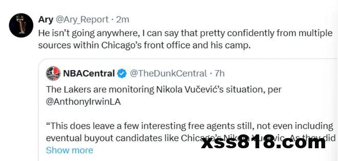 新晋的爆料记者Ary转推说:“我很有信心,武切维奇会留下公牛,芝加哥管理层与他本人都没有意愿离开。”【他似乎终结了这些流言,不过他此前有多次的消息源都出现了错误】