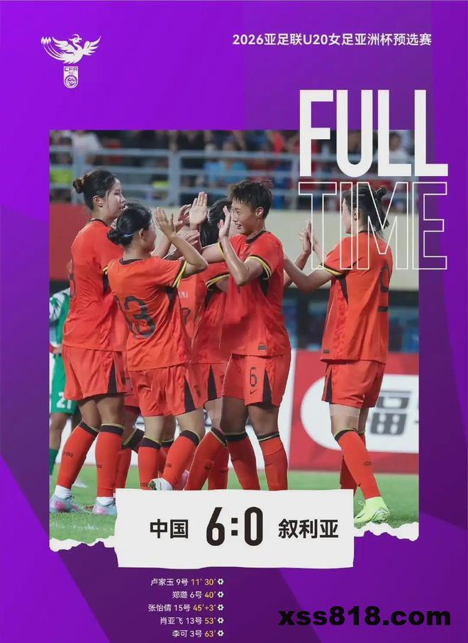 8月6日晚,中国U20女足在亚洲杯预选赛的首场比赛,6-0大胜叙利亚队,取得开门红。