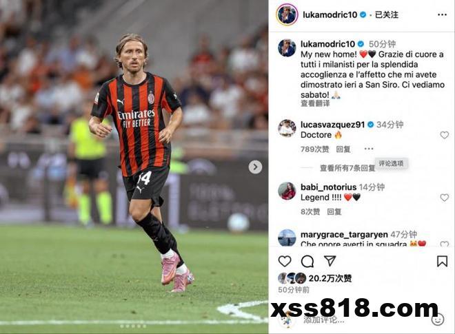 赛后,莫德里奇更新社媒向米兰球迷致谢,写道:我的新家!❤️ 衷心感谢所有米兰球迷,感谢你们昨天在圣西罗给予我的热烈欢迎和关爱。星期六见!