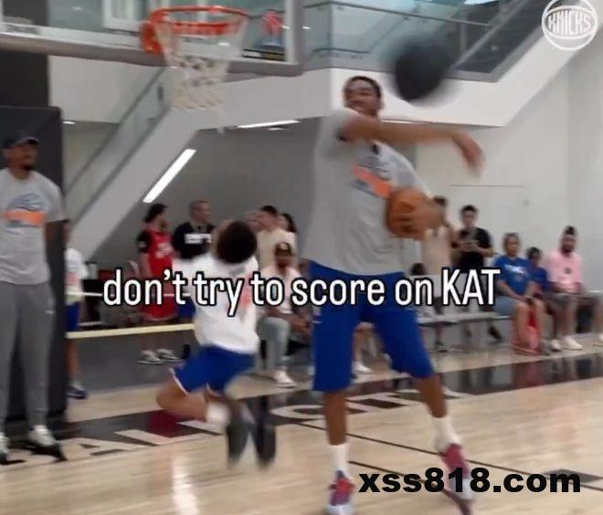 雷速体育8月22日讯 今日,尼克斯官方社交媒体晒出唐斯在训练营中花式扇飞小球员投篮的视频。