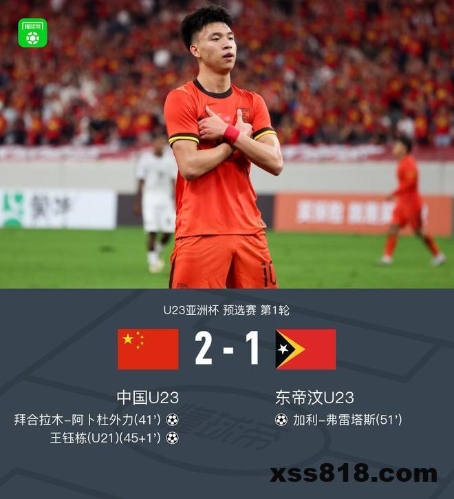 北京时间9月3日19:35,U23亚洲杯预选赛,中国U23主场对阵东帝汶U23。上半场,中国队持续施压,拜合拉木屡造威胁后小角度推射打破僵局,随后王钰栋兜射破门扩大领先;下半场,向余望连续3次错失扩大比分的良机,弗雷塔斯小角度破门扳回一城。最终,中国U23主场有惊无险2-1战胜东帝汶U23。