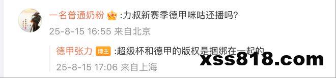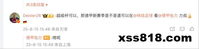 德甲版权尚未尘埃落定。据我了解,德甲联盟与咪咕的谈判仍在进行之中。一个确定的消息是咪咕将在本周末转播拜仁与斯图加特的德国超级杯。当被问及“德甲新赛季是否还可以在咪咕看力叔”时,资深媒体人张力在个人微博上给出了肯定的答复。