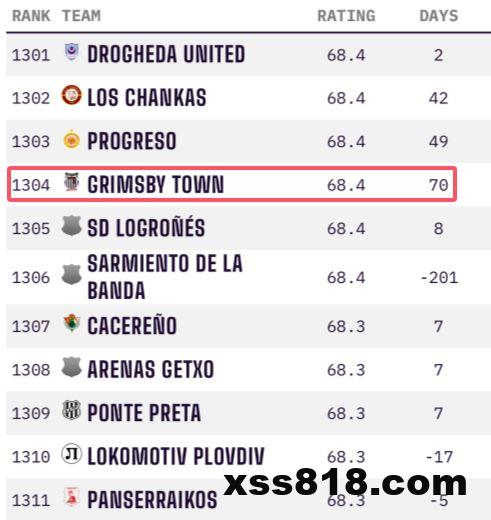 雷速体育8月28日讯 英格兰联赛杯第2轮比赛,曼联点球大战不敌英乙联赛球队格林斯比,遗憾出局。赛后,有网友向数据机构咨询了格林斯比的世界排名情况。