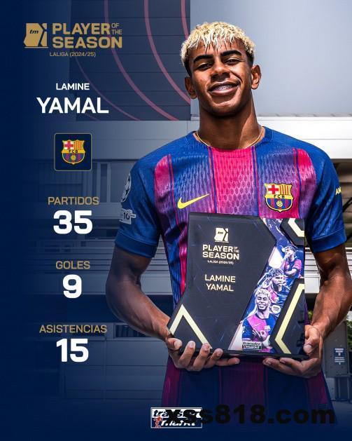 北京时间9月12日,据德国转会市场官方消息,巴萨边锋亚马尔获评德转上赛季西甲赛季最佳球员,该奖项由用户投票选出。