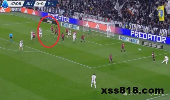 第47分钟尤文图斯战术角球传中,原本后点2V2对位盯防,但中路争顶后弹到无人地带,前插的加蒂近距离凌空被迈尼昂挡出,对位盯防加蒂的就是随后顾着举手示意越位的托莫里。