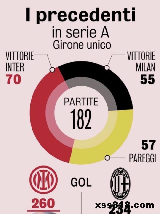 意甲交锋当中,国米70胜55负57平占优;而在双方总计244次历史交锋中,国际米兰以91胜占据上风,红黑军团则取得82场胜利,另有71次双方握手言和。